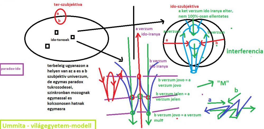 Ket egymassal terben szinkronban levo szubjektiv-verzum melynek a sebessege es ido iranya eltero, ezert lehetseges a paradox-idot az elet esemenyein keresztul erzekelni, ezert igazak az egzisztencialis vagy mas neven paradox-ido fizikai alaptorvenyek. A vilag egyetem mashogy mukodik, mint ahogy gondoljuk.